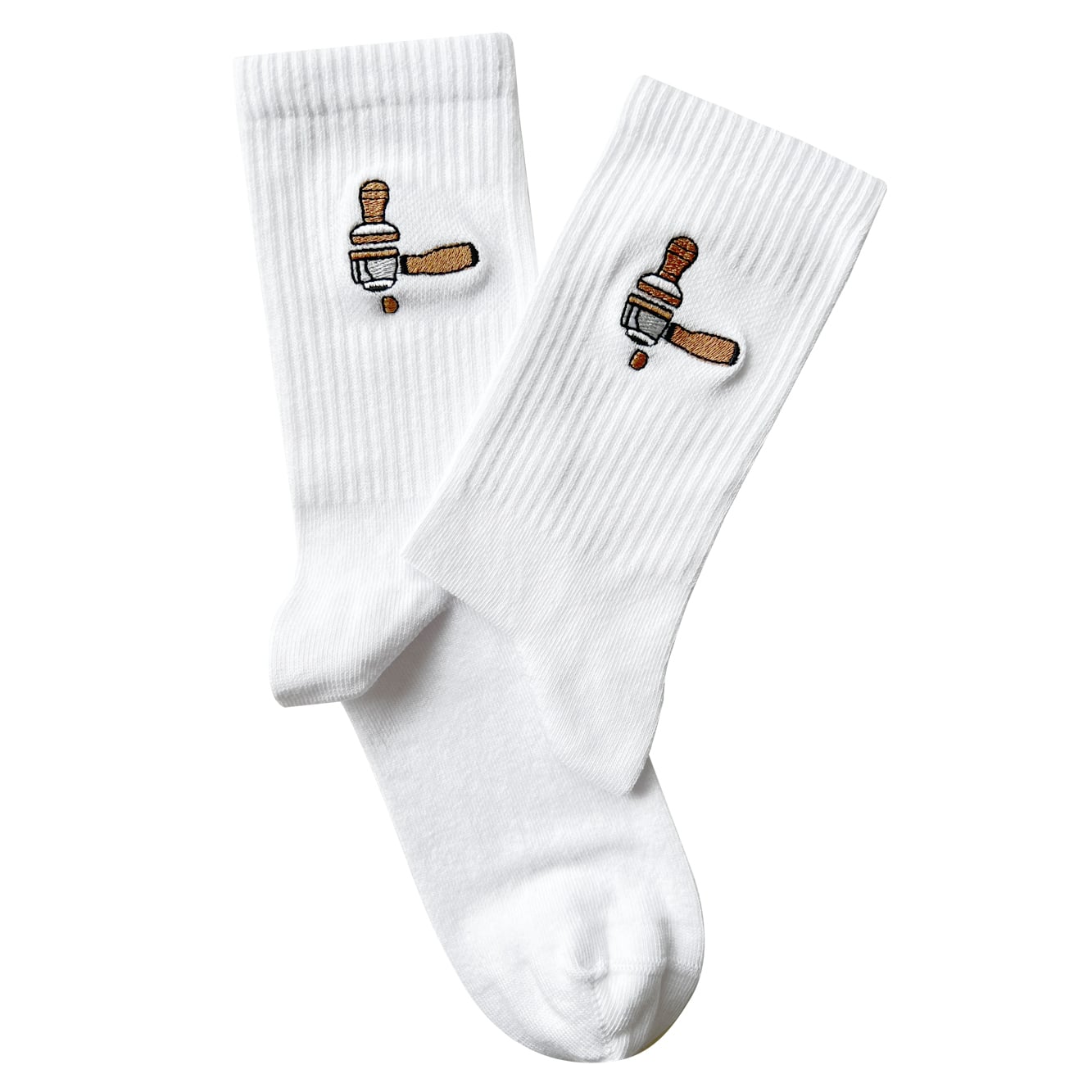 For espresso fans: portafilter-themed socks with café-inspired details that look great in any sock drawer.