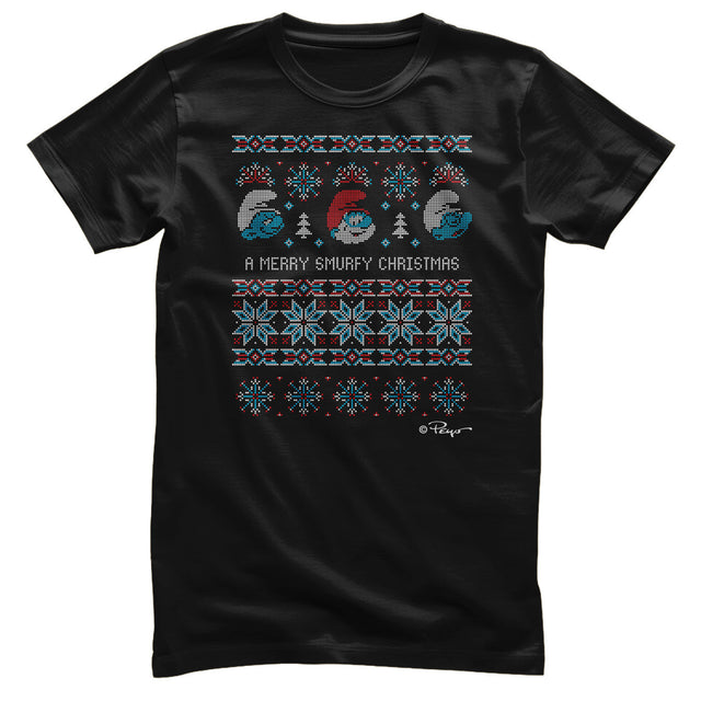 Smurfs - A Merry Smurfy Christmas Mens T-Shirt - Black / Small is backordered and will ship as soon as it is back in stock.
