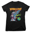 Superman - Defender Of The Earth Women T-Shirt - Black / Small is backordered and will ship as soon as it is back in stock.